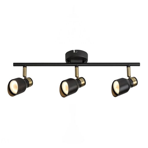 Matt fekete és arany színű fém spot lámpa fedén vágott, mozgatható fejjel, GU10-es foglalattal.