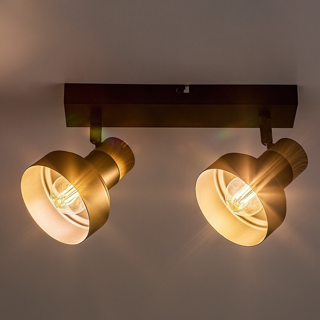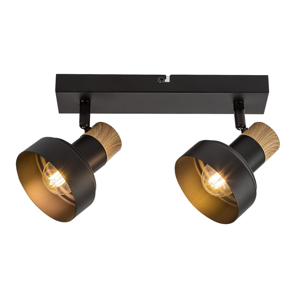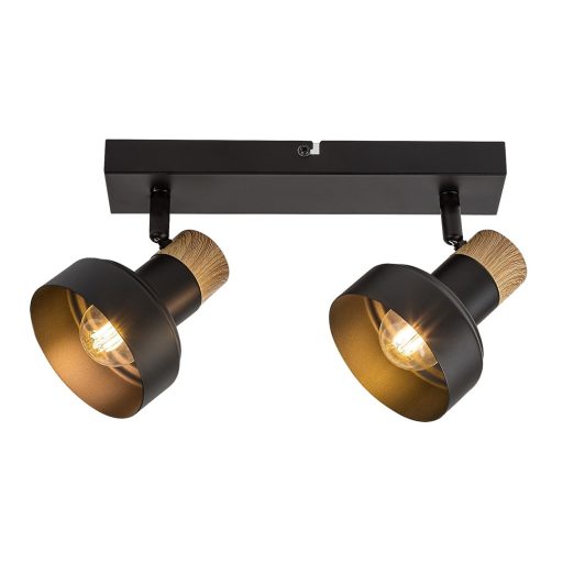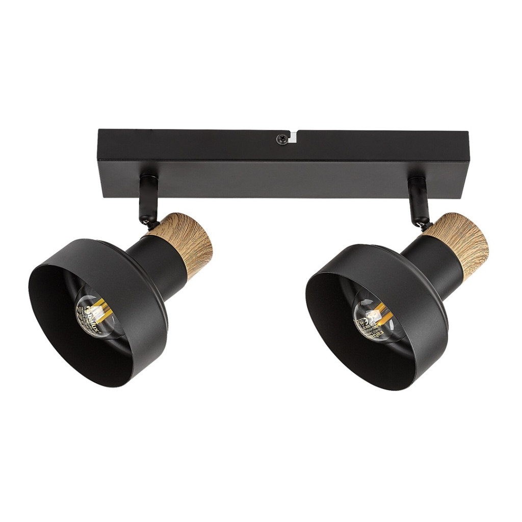 Fekete színű fém spot lámpa tölgy betéttel, billenthető fejjel, E14-es foglalattal.
