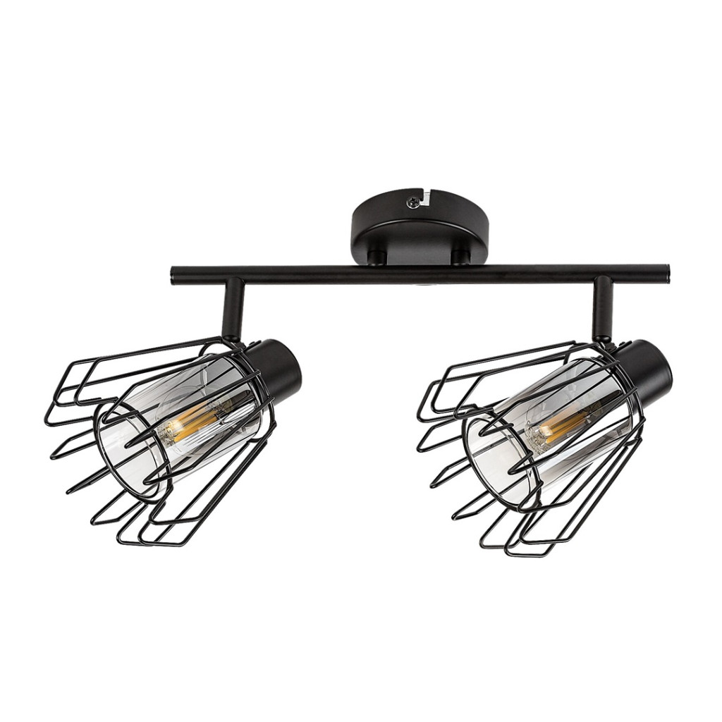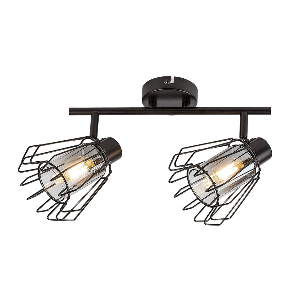 Matt fekete színű fém vázas szpot lámpa lefelé világosodó, füstös üveg búrával, E14-es foglalattal, állítható fejjel.