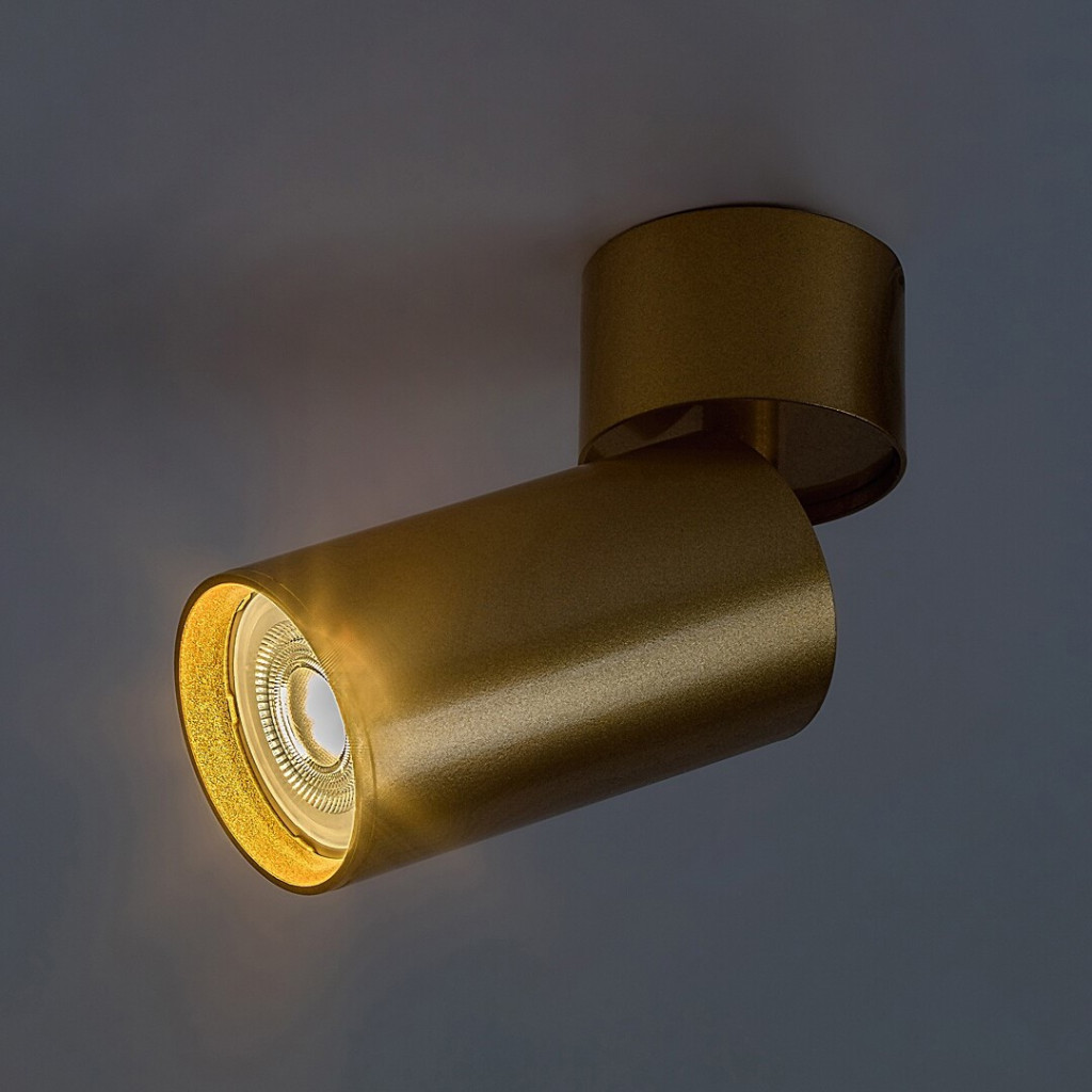 Arany színű spot lámpa billenthető fejjel, GU10-es foglalattal.
