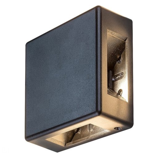 Modern megjelenésű kültéri fali lámpa beépített, meleg fehér fényű LED fényforrással ,12x 12cm széles fekete színű műanyag lámpatesttel, IP54-es védettséggel. A lámpa indirekt világít. Mind a négy oldalán fényt bocsát ki, amivel kiválóan alkalmas a homlokzat dekor kivilágítására.
