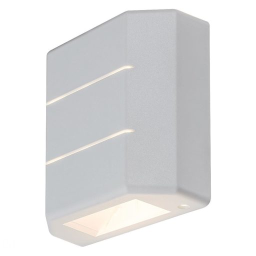 Modern megjelenésű kültéri fali lámpa beépített, meleg fehér fényű LED fényforrással ,12x 12cm széles fehér színű műanyag lámpatesttel, IP54-es védettséggel. A lámpa indirekt, felfelé és lefelé világít. Alkalmas a homlokzat dekor kivilágítására.