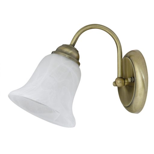 Klasszikus stílusú fali lámpa, bronz színű fém vázzal, fehér színű alabástrom üveg búrával.