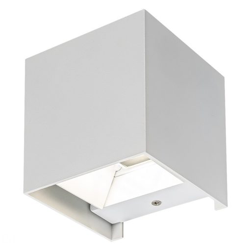 Kocka alakú kültéri fali lámpa 1db G9-es foglalattal ,10x 10cm széles matt fehér színű fém és műanyag lámpatesttel, IP54-es védettséggel. A lámpa felfelé és lefelé egyaránt világít. A lámpa alján terelő lapok találhatóak, melyek segítségével a lefelé sugárzott fény tetszés szerint irányítható.