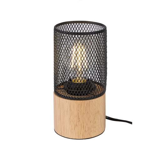 Natúr fa és fekete színű fémrács asztali lámpa E27-es foglalattal, vezetékre szerelt kapcsolóval. A lámpa dekor fényforrással mutat a legjobban, ami nem tartozék.