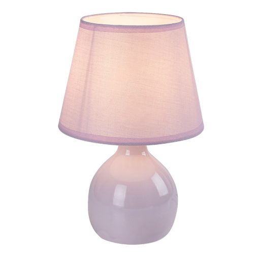 Világos rózsaszínű kerámia vázas asztali lámpa rózsaszín textil bevonatos lámpa ernyővel, E14-es foglalattal, vezetékre szerelt kapcsolóval.