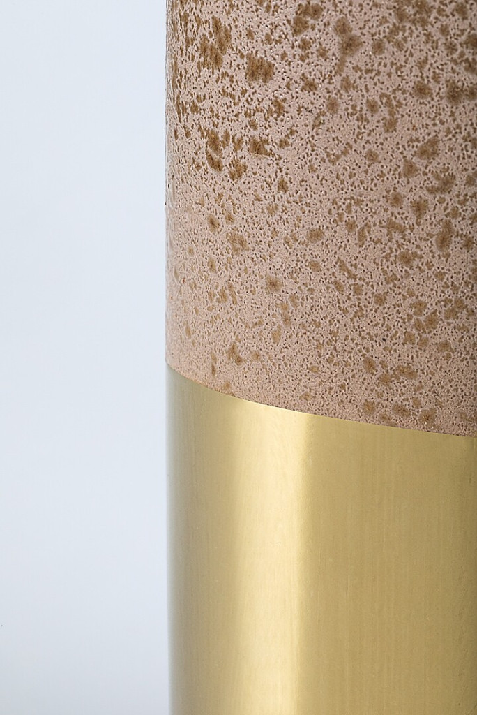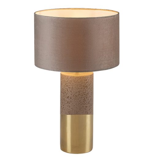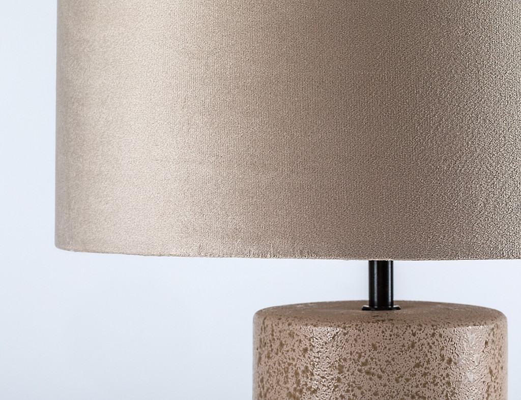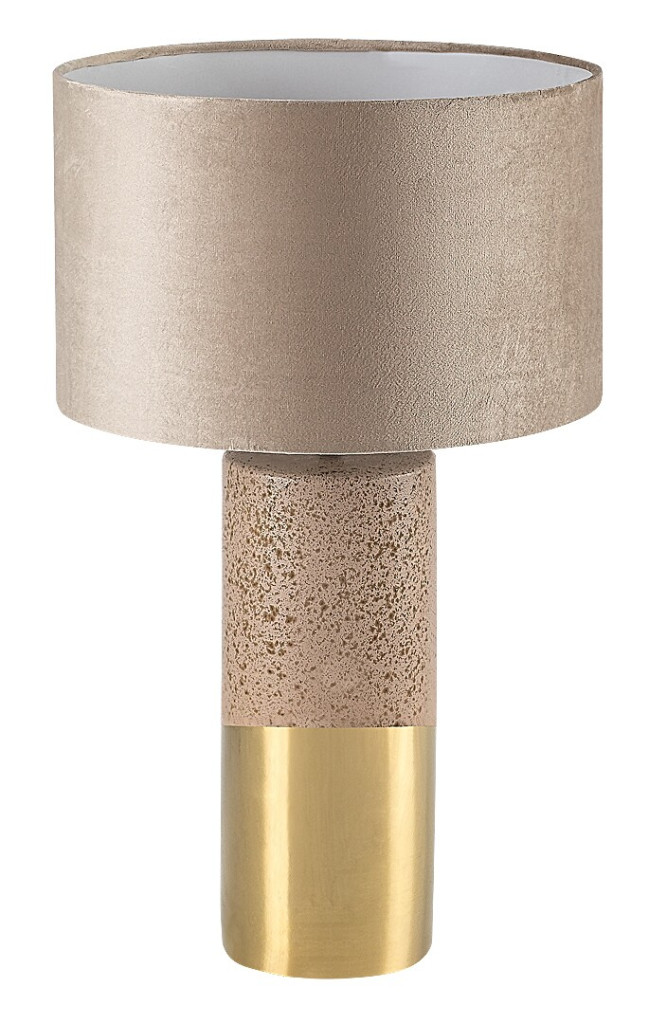 Arany színű kerámia vázas asztali lámpa barna színű textil búrával, E27-es fényforrással, vezetékre szerelt kapcsolóval.