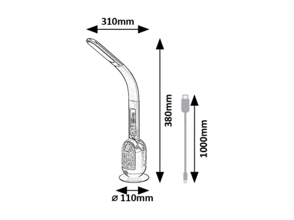 Rábalux 74230 Figen 38x31cm, érintőkapcsolós, fényerőszabályzós, alul színváltós, idő, dátum és hőmérséklet kijelzős, 290lm, 5000K íróasztali lámpa