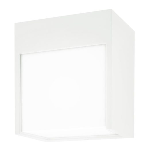 Modern megjelenésű kültéri fali lámpa beépített, természetes fehér fényű LED fényforrással ,12x 13cm széles fehér színű fém és műanyag lámpatesttel, IP54-es védettséggel.