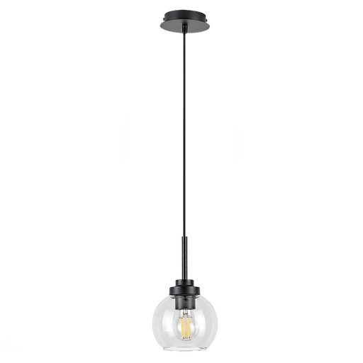 Fekete színű fém fürdőszobai lámpa átlátszó üveg búrával, 1db E27-es foglalattal, IP44-es védelemmel.