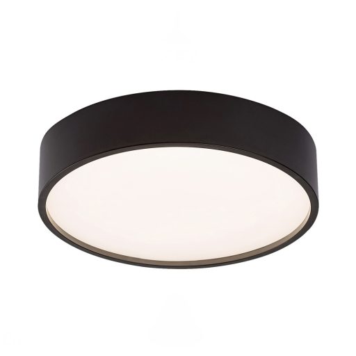 Fekete színű keretes, fehér színű műanyag búrás fürdőszobai mennyezeti lámpa beépített természetes fehér színhőmérsékletű LED fényforrással, IP44-es védelemmel.