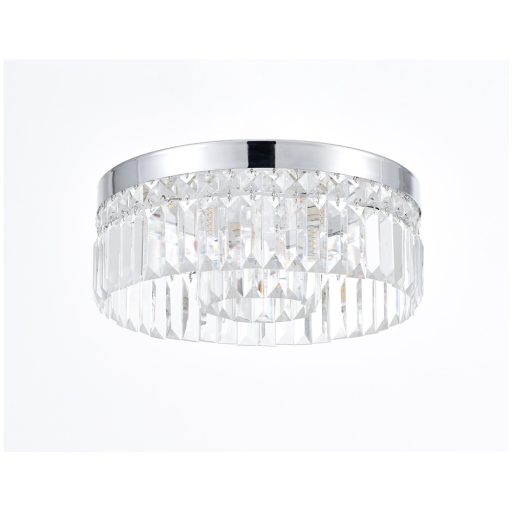 Króm színű fém vázas fürdőszobai mennyezeti lámpa átlátszó üveg kristály búrával, 6db G9-es foglalattal, IP44-es védelemmel.