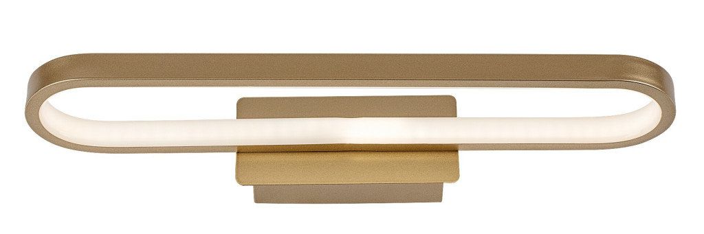 40cm hosszú, arany színű fém vázas fali lámpa fehér színű szilikon betéts búrával, természetes fehér színhőmérsékletű beépített LED fényforrással, IP44-es védelemmel.