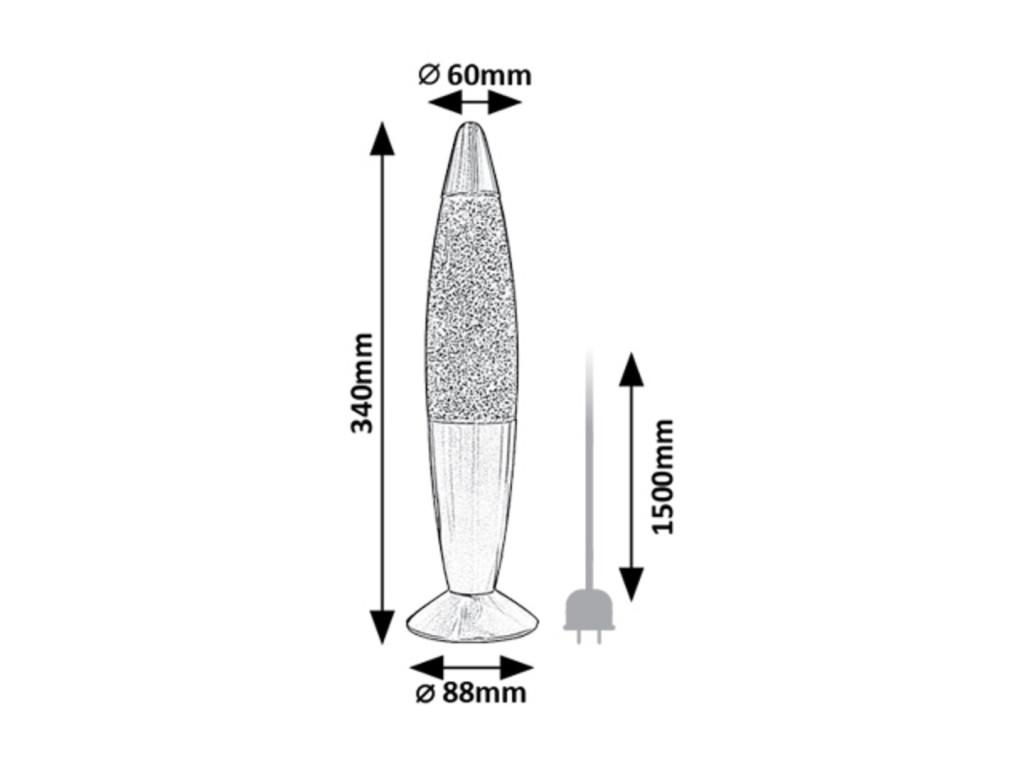 Rábalux 76008 Glitter Rainbow2 34x6cm, 24lm, 3000K, csillámos lávalámpa vezetékre szerelt kapcsolóval