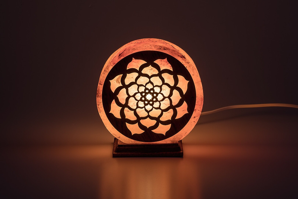Fa talpas, mandala motívumos narancs színű sólámpa 1db E14-es foglalattal, vezetékre szerelt kapcsolóval.