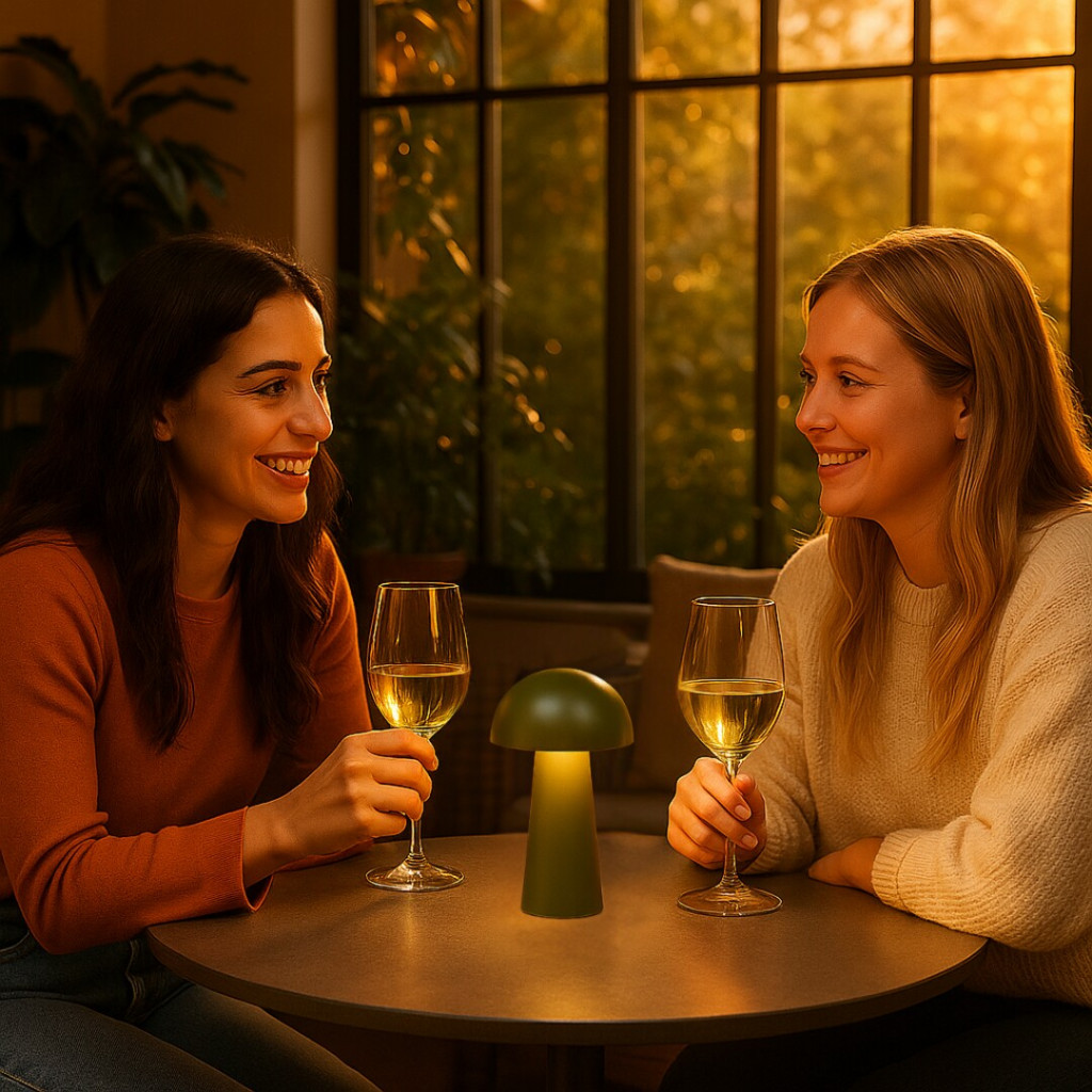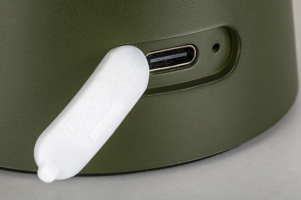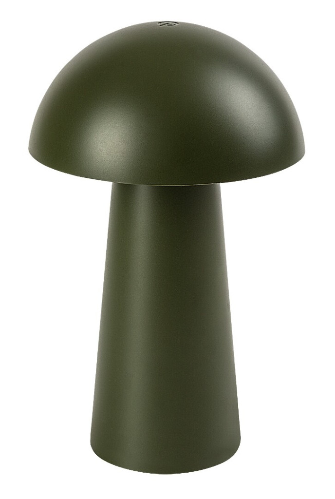 Zöld színű műanyag akkumulátoros asztali lámpa meleg fehér fényű beépített LED fényforrással, érintéssel szabályozható fényerővel, IP44-es védelemmel. A lámpa USB aljzaton keresztül tölthető. A feltöltés 4 órát vesz igénybe, amivel akár 5 órán át képes a lámpa világítani.