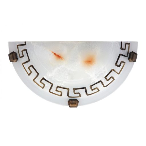 Modern stílusú fali lámpa, fém vázzal, fehér alapon, barna, görög mintás alabástrom üveg búrával.