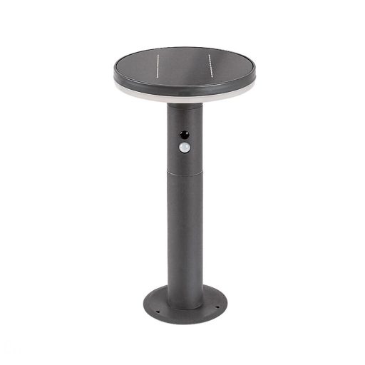 A modern stílusú Alaska kültéri mozgásérzékelős, napelemes állólámpa praktikus választás a kerti világítás megoldásához. Segítségünkre lehet a kertet átszelő gyalogút megvilágításában, amelynek mentén többet is elhelyezhetünk belőle. Ez a kerek formákból álló modell antracit színben, rozsdamentes acélból készül, és fehér műanyagbúra egészíti ki. Az Alaska beépített LED fényforrással rendelkezik, amelynek fényereje 250 lumen, élettartama 10 000 óra, színhőmérséklete pedig 4000 K, azaz természetes fehér fénnyel világít. Az intelligens szenzor, amely a lámpa fényerejét a körülményeknek megfelelően változtatja, 5-8 méter távolságból, 120°-os látószögben érzékeli a mozgást. Az akkumulátor feszültsége 3,7 V, kapacitása 2500 mAh. A kapcsolóval ellátott állólámpa méretei a következők: átmérője 210 mm, magassága 380 mm, beépítési átmérője 130 mm. A kültéri lámpa IP44-es védettsége garantálja, hogy legfeljebb 1 mm átmérőjű tárgyak behatolása ellen, valamint bármilyen irányból fröccsenő víz ellen védett.