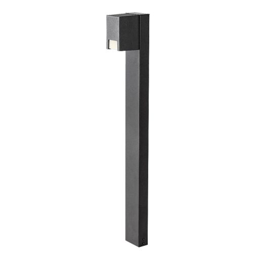 Fekete színű fém vázas kültéri álló lámpa fehér színű műanyag betéttel, GU10-es foglalattal, IP44-es védelemmel.