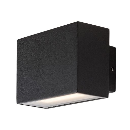 Fekete színű fém vázas kültéri fali lámpa üveg betéttel, természetes fehér színhőmérsékletű beépített LED fényforrással, IP54-es védelemmel