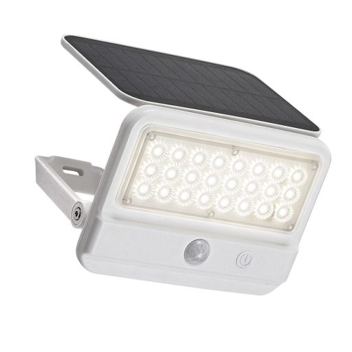 Napelemmel működő fehér színű műanyag kültéri fali lámpa beépített természetes fehér színhőmérsékletű LED fényforrással, IP54-es védelemmel. Alámpát mozgás- és fényérzékelővel is ellátták. A modell szenzora 3-5 méter távolságból, 120°-os látószögben érzékeli a mozgást, a fényérzékelő pedig a lámpa fényerejét mindig a körülményekhez igazítja.