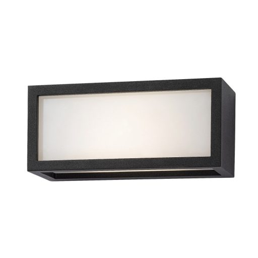 Fekete színű fém vázas kültéri fali lámpa opálos műanyag búrával, természetes fehér színhőmérsékletű beépített LED fényforrással, IP54-es védelemmel