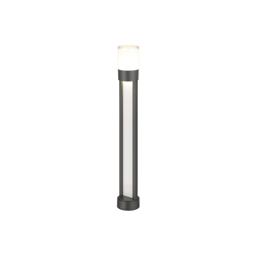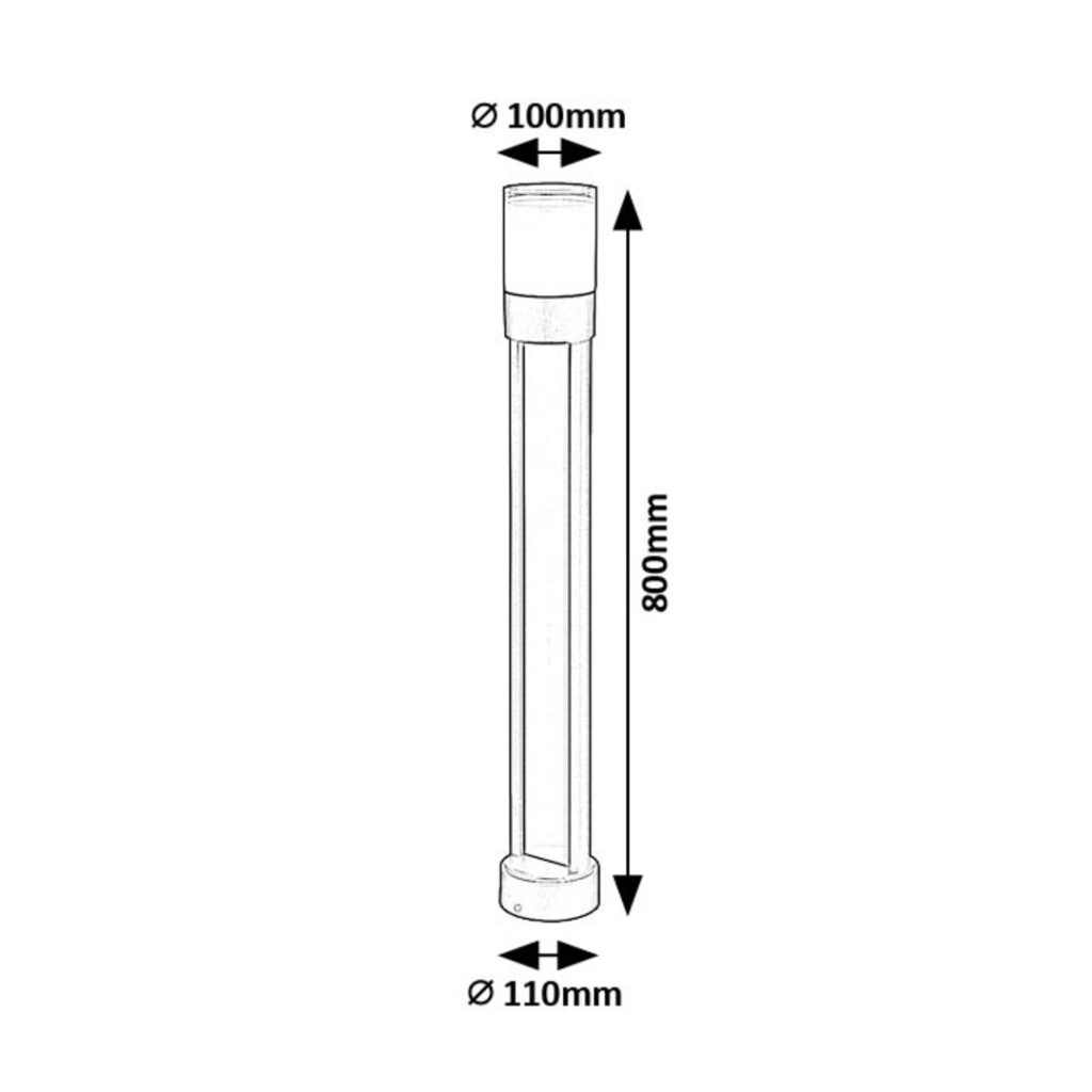80cm magas, fekete színű fém kültéri álló lámpa fehér színű műanyag búrával, meleg fehér színhőmérsékletű beépített LED fényforrással, IP44-es védelemmel.