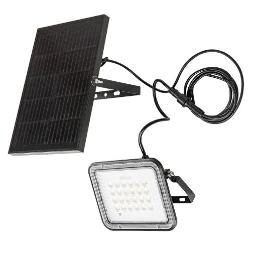 Fekete színű napelemes teljes egészében műanyagból készült fali lámpa. Beépített LED fényforrást tartalmaz, amelynek színhőmérséklete távirányító segítségével háromféle változatban állítható. Ideális választás a teraszra vagy a ház külső falára. Beépített akkumulátorral látták el, amely 10–12 óra alatt töltődik fel, és egy feltöltéssel 4–6 órán át üzemel.