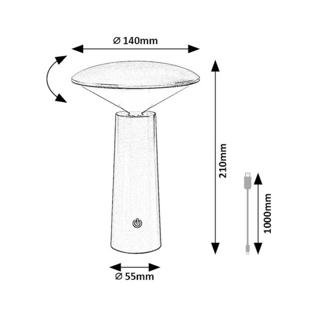 Rábalux 77146 Polperro akkumulátoros, érintőkapcsolós, fényerőszabályzós, 14x21cm, 180lm, 2800/4000/6500K, IP20 asztali lámpa