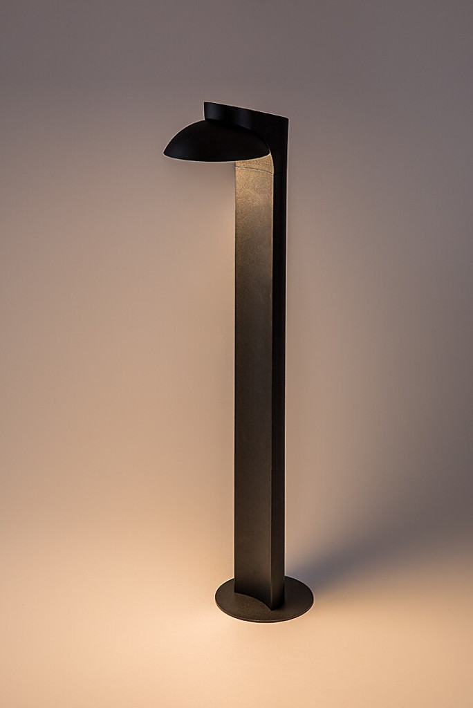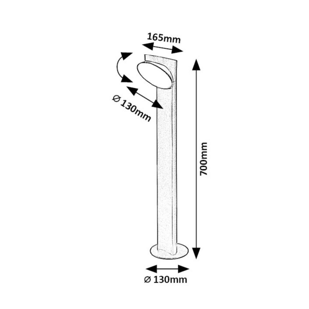 Fekete színű fém kültéri álló lámpa fehér színű, forgatható műanyag búrával, meleg fehér színhőmérsékletű beépített LED fényforrással, IP54-es védelemmel.