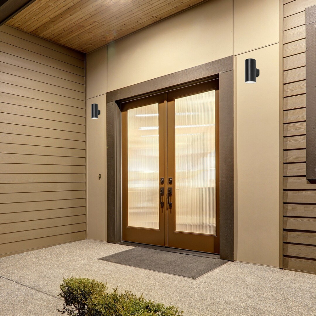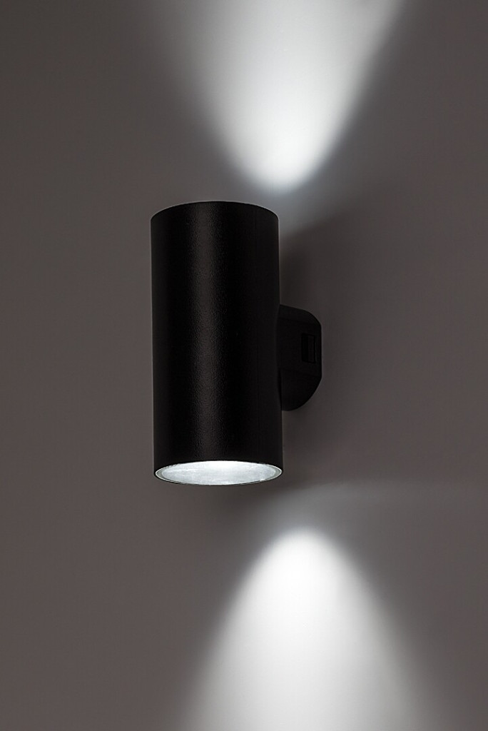 Felfelé és lefelé világító, fekete színű műanyag kültéri fali lámpa beépített LED fényforrással, IP65-ös védelemmel. A LED színhőmérséklete a lámpán lévő kapcsoló segítségével beállítható 2700/4000/6500Kelvinre, azaz meleg, természetes vagy hideg fehér színhőmérsékletre.