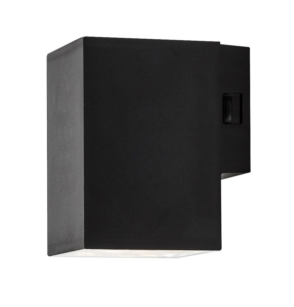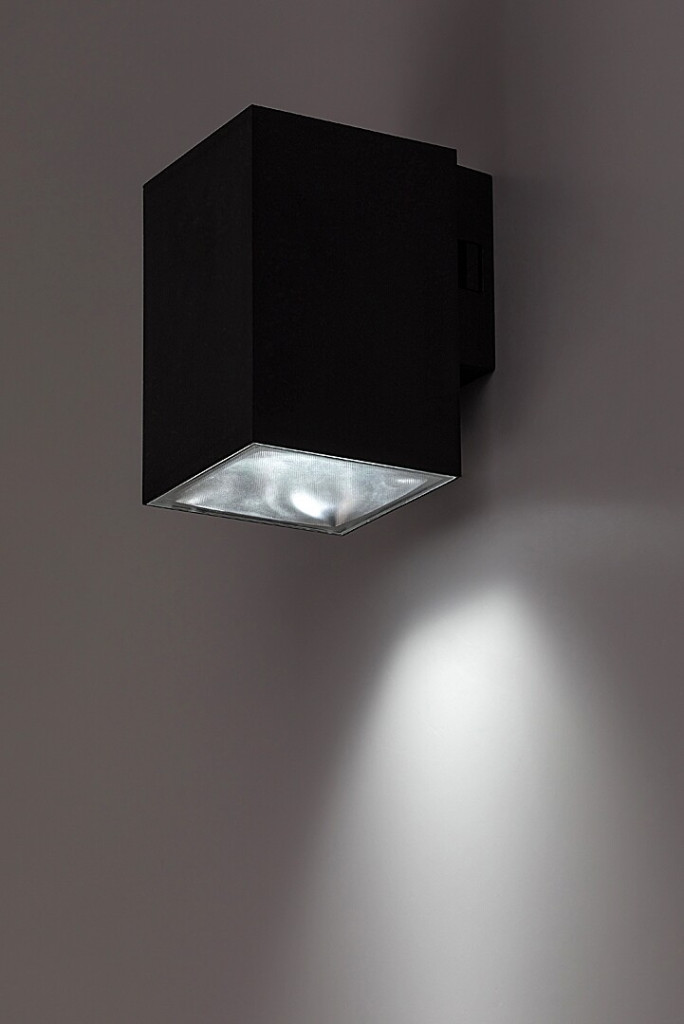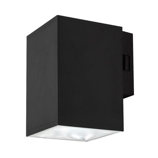 Lefelé világító, fekete színű műanyag kültéri fali lámpa beépített LED fényforrással, IP65-ös védelemmel. A LED színhőmérséklete a lámpán lévő kapcsoló segítségével beállítható 2700/4000/6500Kelvinre, azaz meleg, természetes vagy hideg fehér színhőmérsékletre.
