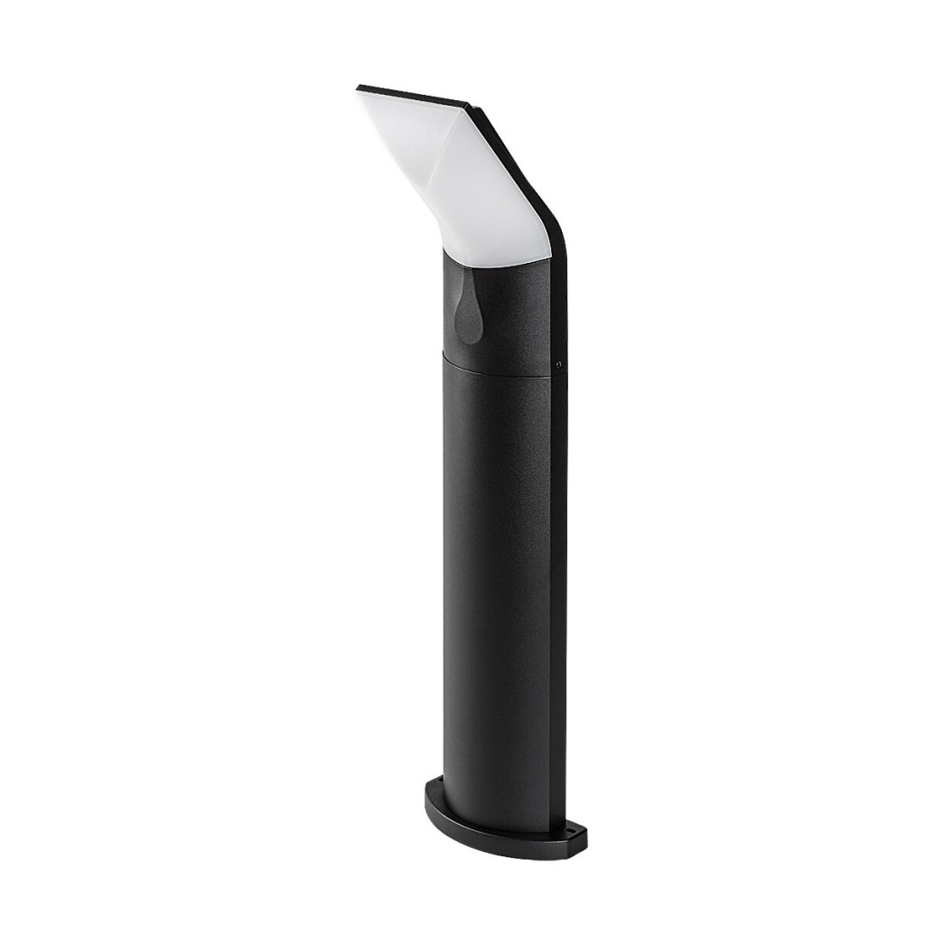 Fekete színű fém kültéri álló lámpa fehér színű műanyag búrával, meleg fehér színhőmérsékletű beépített LED fényforrással, IP54-es védelemmel.