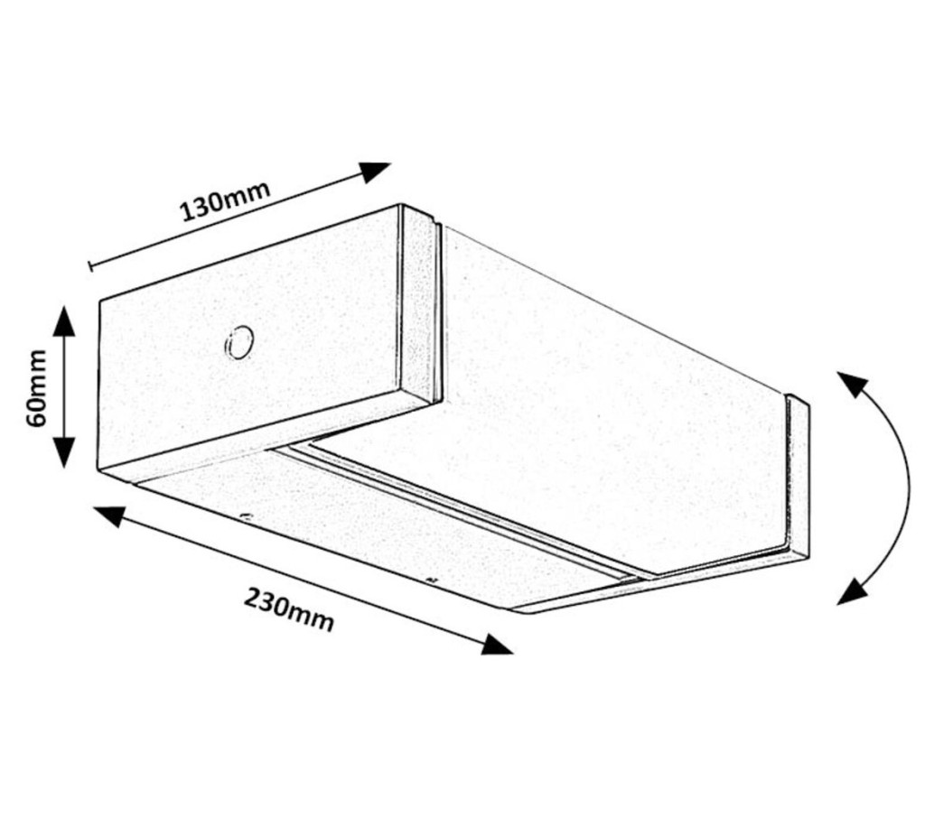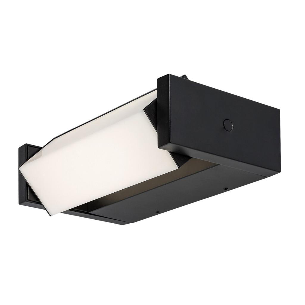 Fekete színű fém kültéri fali lámpa fehér színű, forgatható műanyag búrával, természetes fehér színhőmérsékletű beépített LED fényforrással, IP54-es védelemmel.