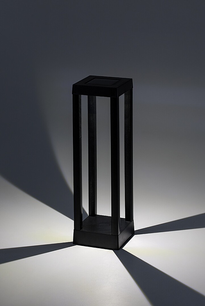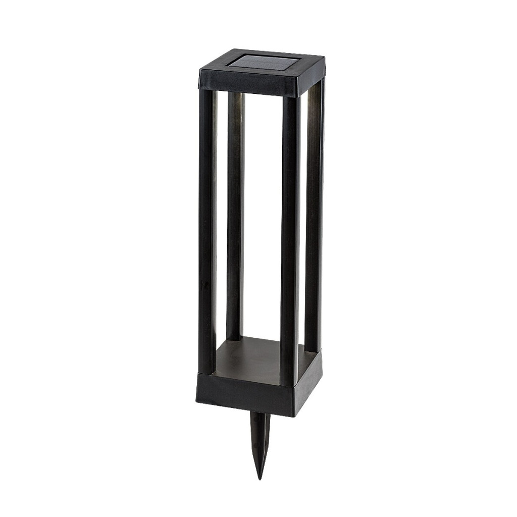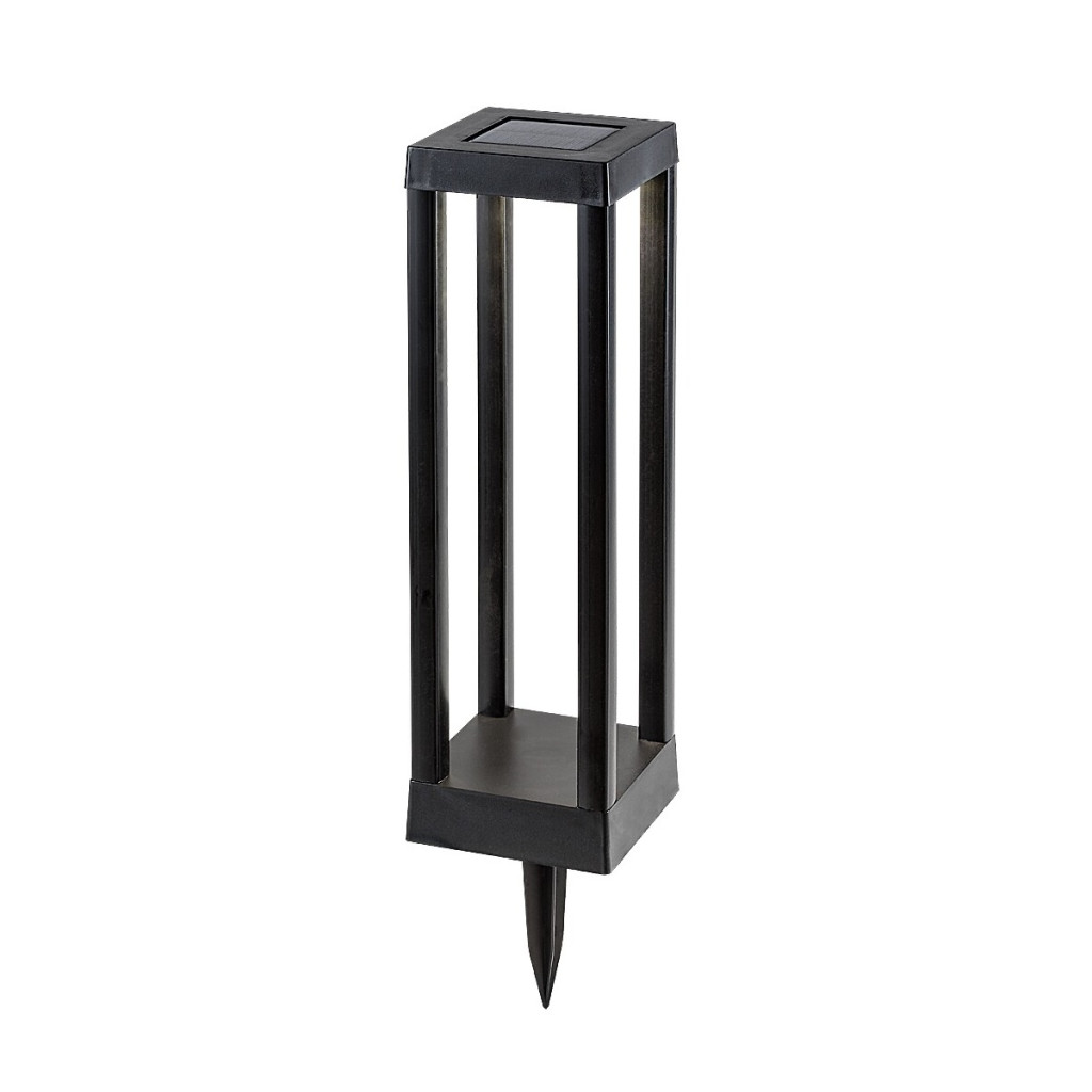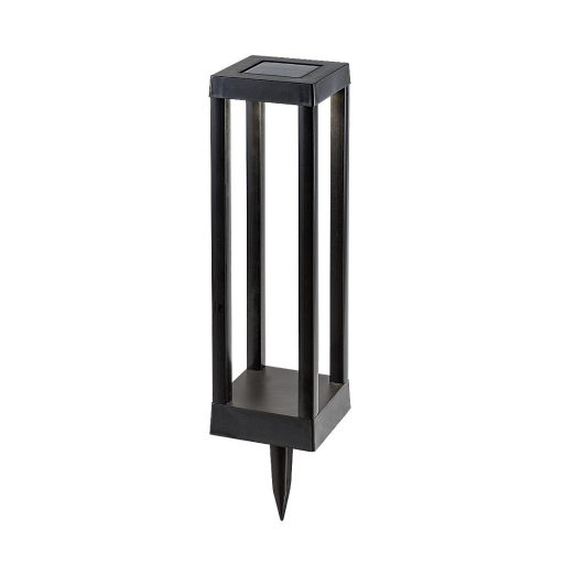 A kerti dekorlámpa elegáns fekete színben, műanyagból készül, és földből kilátszó, hasáb alakú része csaknem teljes felületén bocsátja ki a fényt. A lámpa leszúrója levehető.A leszúrható lámpa beépített fényforrással rendelkezik, amely természetes fehér fényt sugároz, tiszta, modern hatást keltve. Beépített akkumulátorral látták el, amely 6–8 óra alatt töltődik fel, és ugyanennyi ideig üzemel egy feltöltéssel.