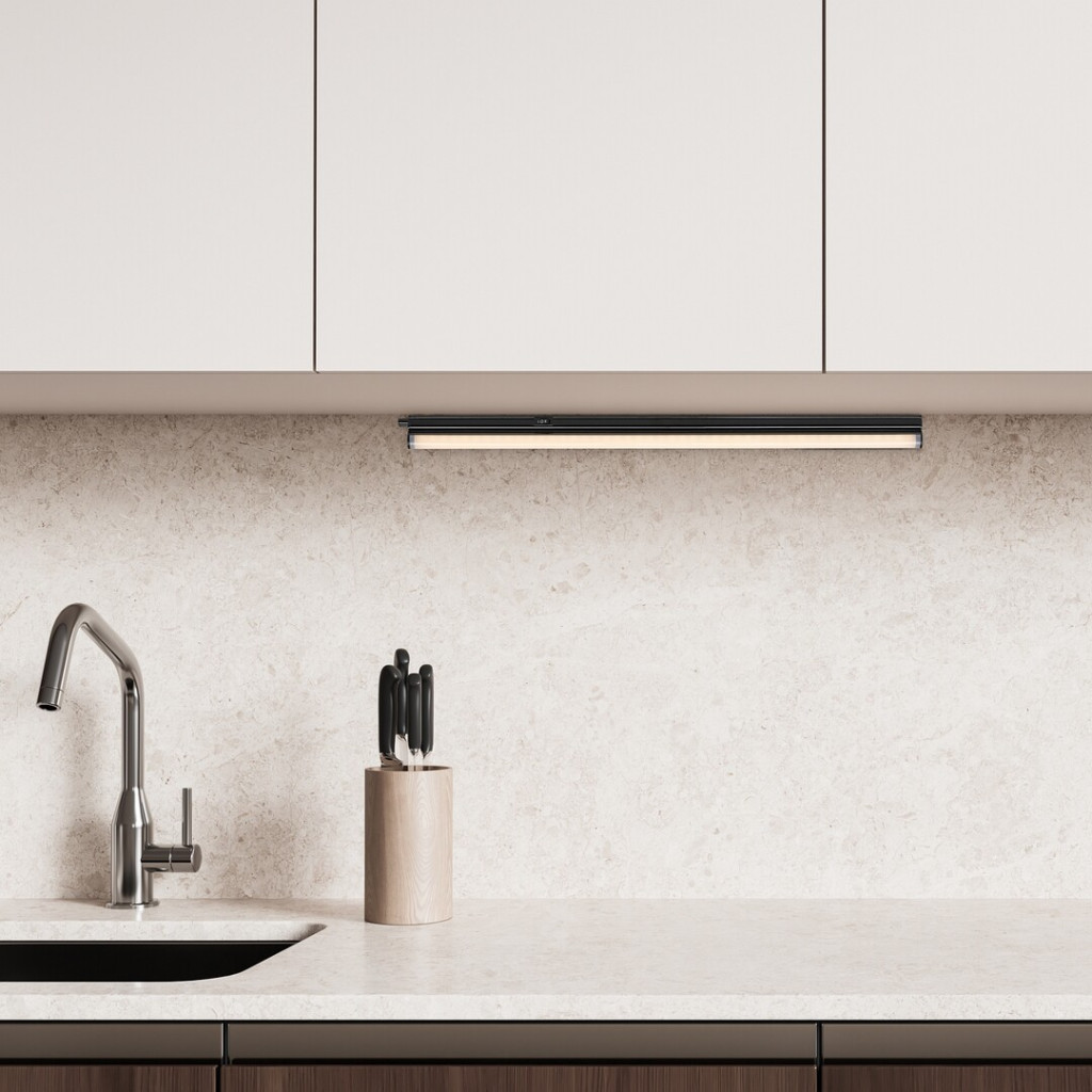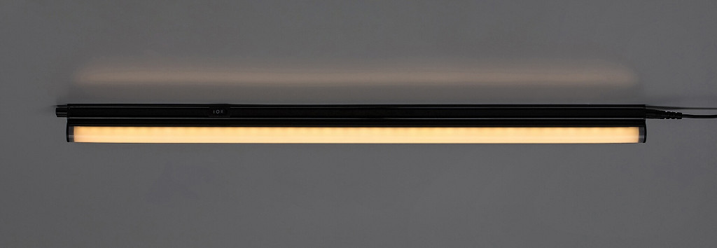 59cm hosszú, fekete és fehér színű műanyag konyhai pultvilágító lámpa beépített LED fényforrással, a lámpatesten kapcsolóval. A lámpa színhőmérséklete 3000/4000K, azaz meleg vagy természetes fehér színhőmérsékletre állítható fali kapcsoló fel/le kapcsolásával. A pultmegvilágító lámpa kábellel vagy kábel nélkül is sorolható.