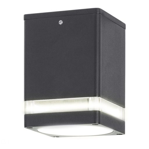 Kültéri hasáb alakú mennyezeti lámpa 1db GU10-es foglalattal, antracit és átlátszó fém és műanyag lámpatesttel, IP54-es védettséggel.