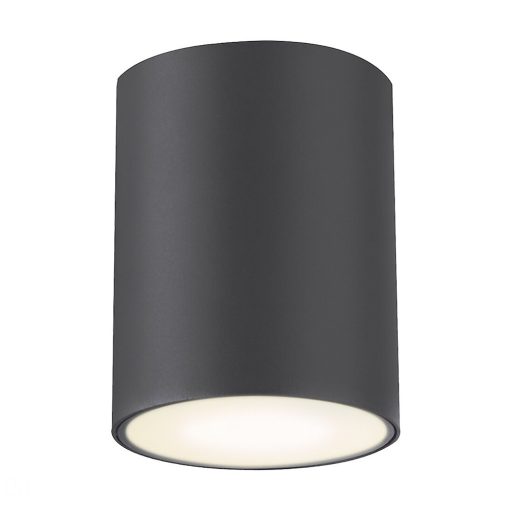 Kültéri henger alakú mennyezeti lámpa 1db GU10-es foglalattal, antracit színű fém lámpatesttel, alul opál üveg betéttel, IP54-es védettséggel.