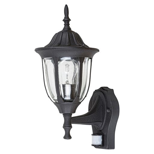 A Milano mozgásérzékelős kültéri fali lámpát a klasszikus stílus kedvelőinek ajánljuk. A fémből és üvegből készült, matt fekete színű lámpát fekete illetve átlátszó búra egészíti ki. Egy darab, legfeljebb 60 W teljesítményű, energiatakarékos fényforrással használható, a foglalat típusa E27. A szenzor 8 méter távolságból, 120°-os látószögben érzékeli a mozgást. A mozgásérzékelő az energiatakarékosság jegyében nappali fényben nem működik. A fali lámpa méretei a következők: magassága 410 mm, átmérője a legszélesebb ponton 165 mm, faltól való távolsága 220 mm. A lámpa nettó súlya kereken 1 kg. A kültéri lámpa IP43-as védettséggel rendelkezik, tehát legfeljebb 1 mm átmérőjű tárgyak, valamint esővíz behatolása ellen 60°-os szögig véd.