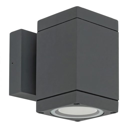 Antracit színű fém kültéri fali lámpa átlátszó üveg betéttel, IP54-es védelemmel.