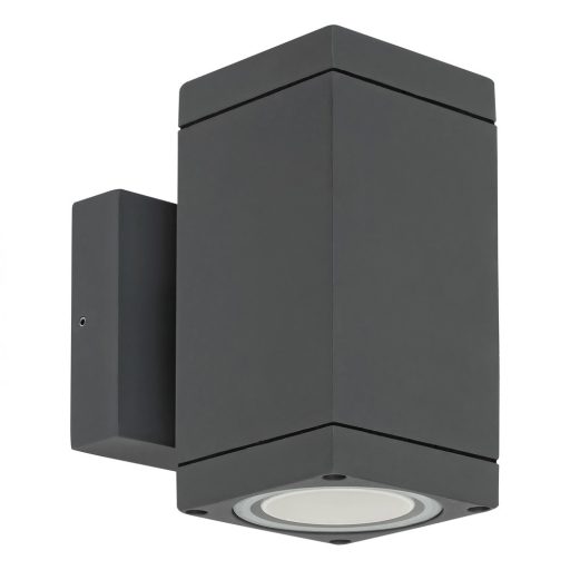 Antracit színű fém kültéri fali lámpa átlátszó üveg betéttel, IP54-es védelemmel. A lámpa felfelé és lefelé egyaránt világít.