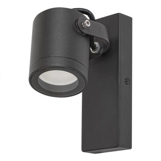Antracit színű fém vázas kültéri falikar átlátszó üveg betéttel, mozgatható fejjel és IP44-es védelemmel.