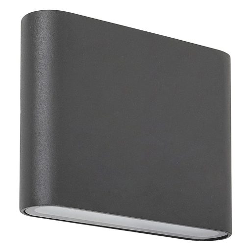 A minimál stílus híveinek bizonyára elnyeri a tetszését a fémből és üvegből készült Nesna kültéri fali lámpa. Az antracitszürke lámpatestet opál lámpabúra egészíti ki, a 2 db beépített LED fényforrás meleg fehér fényt sugároz. Az A+ energiaosztályba tartozó, energiatakarékos fényforrások teljesítménye egyenként 3 W, fényerejük 193 lumen, színhőmérsékletük 3000 K. Ez a modern fali lámpa hosszú időn keresztül kiszolgál bennünket fényével, hiszen fényforrásainak névleges élettartama nem kevesebb, mint 30000 óra. A kültéri lámpa méretei a következők: szélessége 110 mm, magassága 90 mm, faltól való távolsága 30 mm. Az IP54-es védettség garantálja, hogy ez a kültéri lámpa káros porbehatás, valamint bármilyen irányból fröccsenő víz ellen védett. A Nesna kültéri fali lámpára .