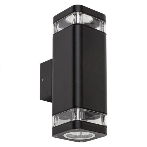 Matt fekete színű kültéri fali lámpa átlátszó műanyag betéttel, IP44-es védelemmel. A lámpa felfelé és lefelé egyaránt világít.
