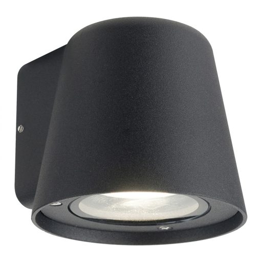 Matt fekete színű fém kültéri fali lámpa átlátszó üveg betéttel, IP54-es védelemmel.