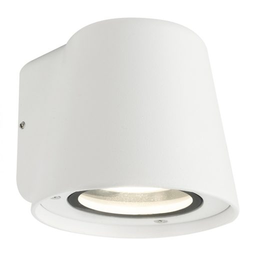 Matt fehér színű fém kültéri fali lámpa átlátszó üveg betéttel, IP54-es védelemmel.