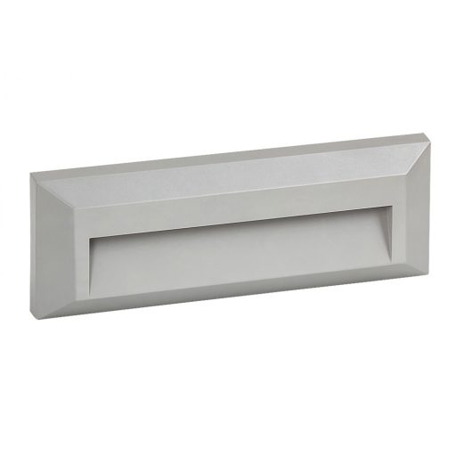 Modern stílusú, kültéri lépcsővilágító lámpa, szürke színű, UV álló műanyag vázzal, beépített LED fényforrással és IP65-ös védelemmel.