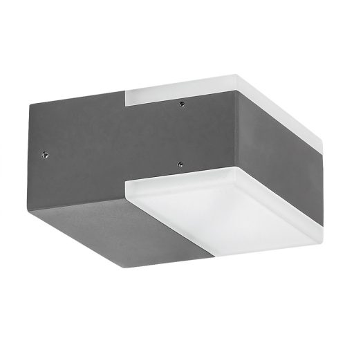 Modern stílusú, kültéri fali lámpa, antracit szürke színű fém vázzal, fehér műanyag búrával, IP54-es védelemmel.