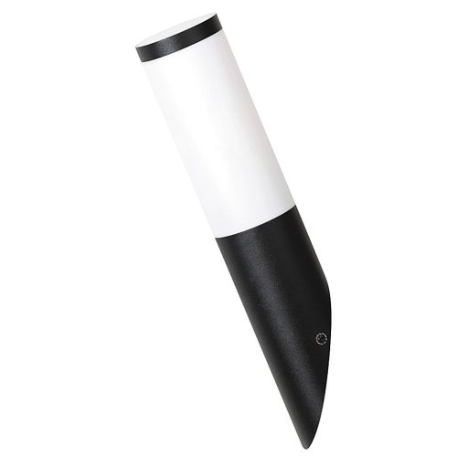 Modern megjelenésű kültéri falikar 1 db foglalattal, döntött talapzatú kivitelben. Matt fekete színű rozsdamentes acélból és műanyagból készített lámpatest, IP44-es, azaz por és fröccsenő víz elleni védelemmel. A lámpatest E27-es foglalatkialakítású, max. 25W teljesítményű, kizárólag energiatakarékos fényforrással használható.
