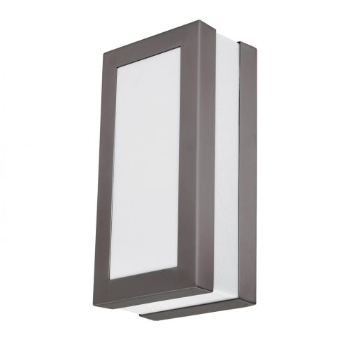 Modern stílusú, kültéri fali lámpa, antracit színű fém vázzal, opálos műanyag búrával, IP44-es védelemmel.